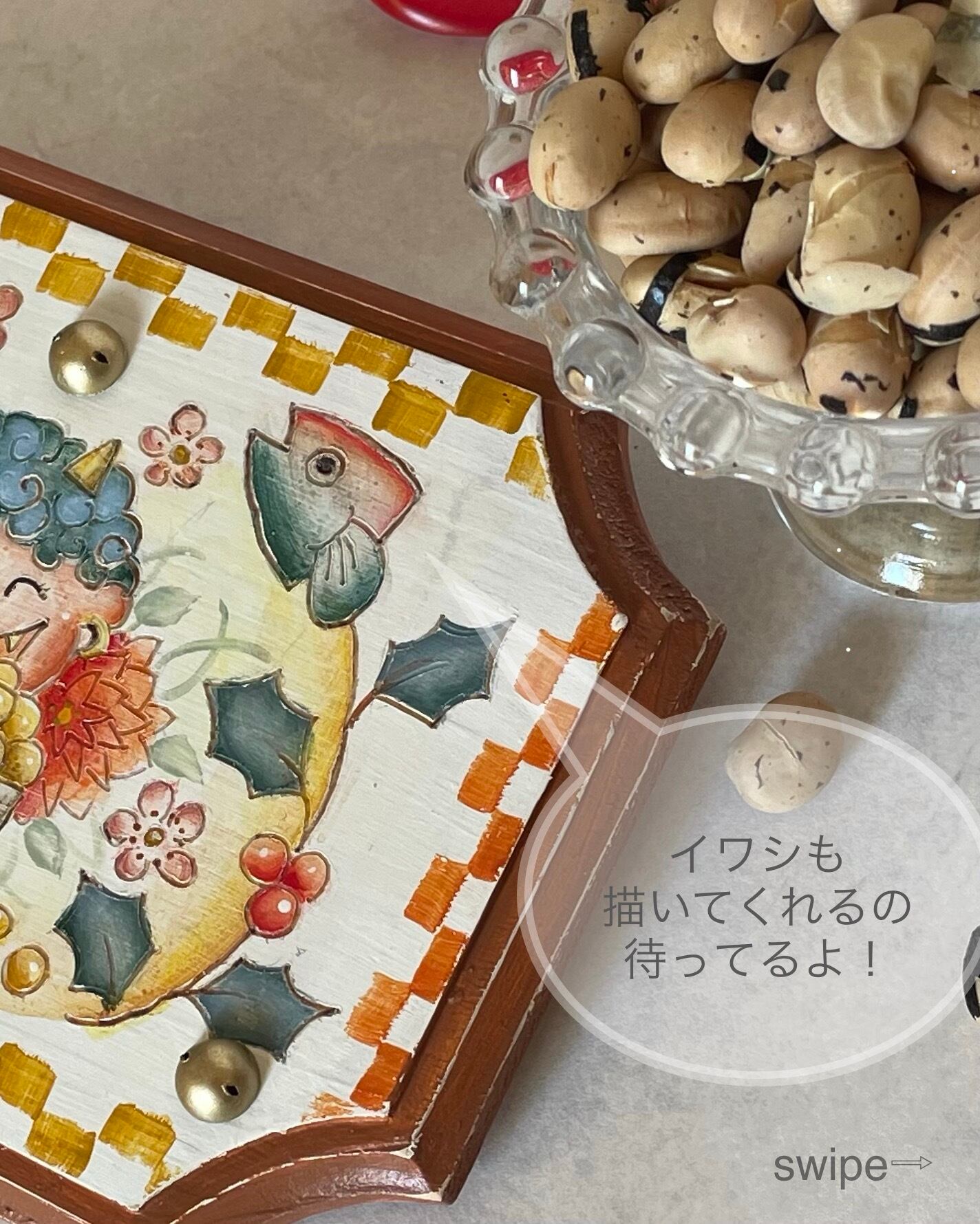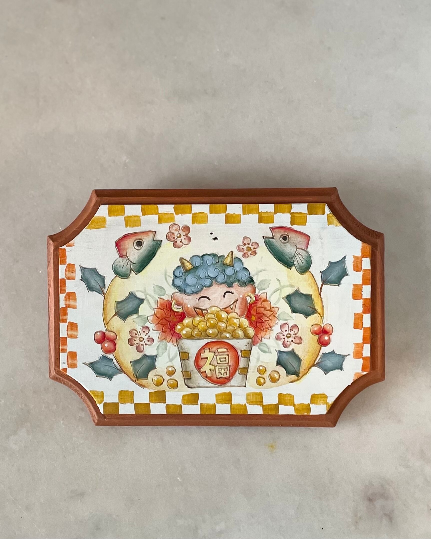 豆まき福を呼ぶ鬼さん(カラーテキスト・ゴールドの豆付)送料込み