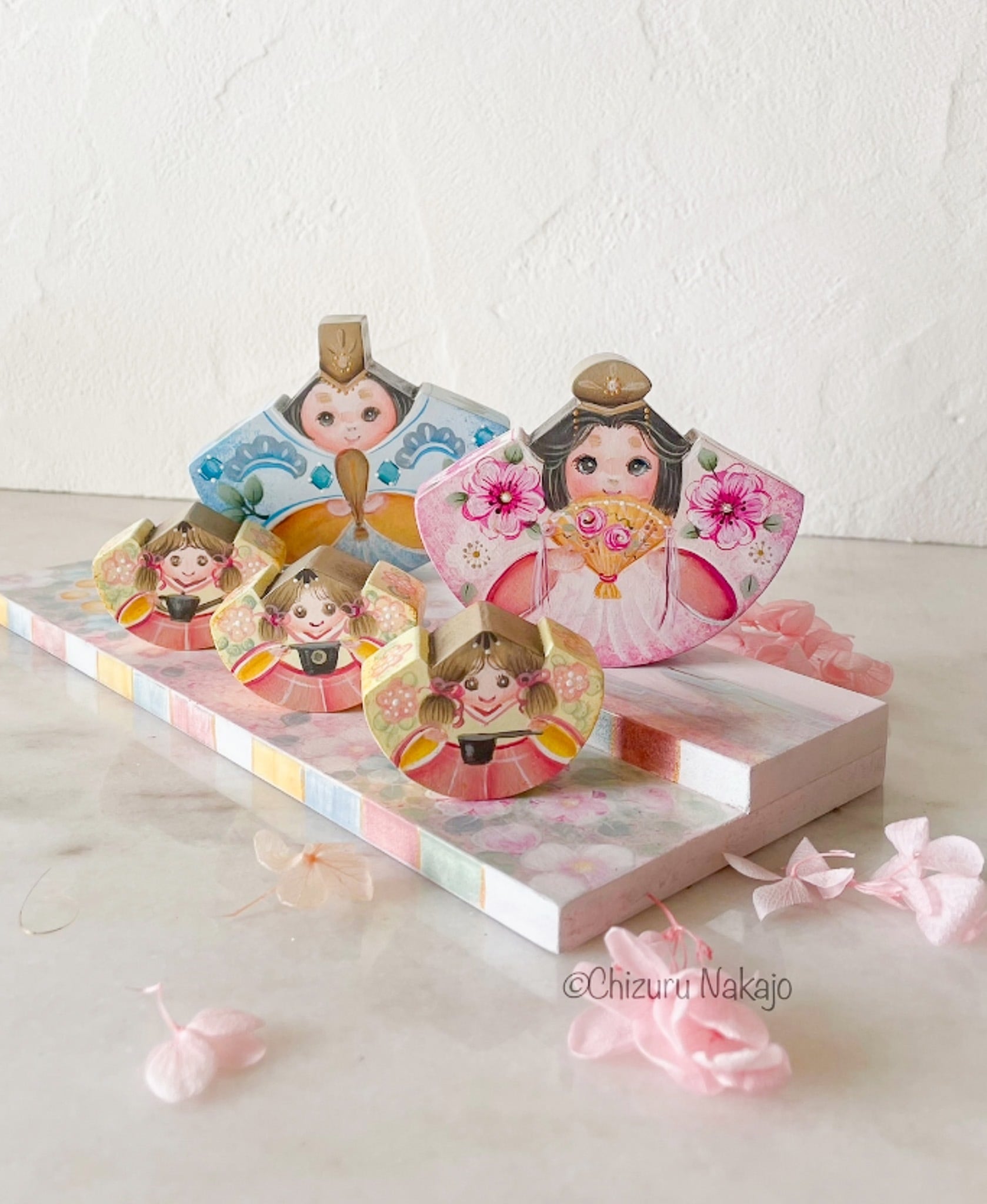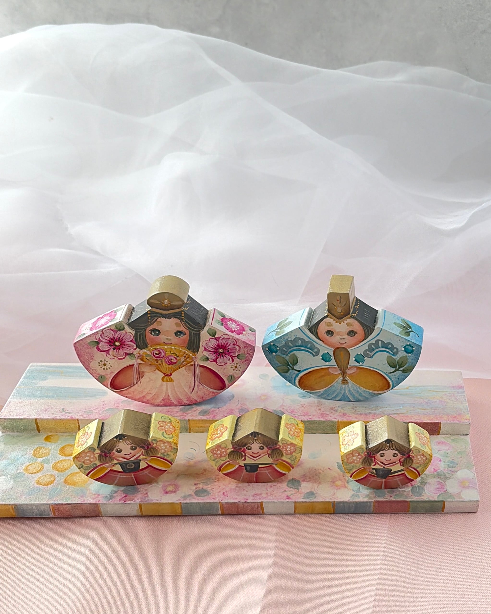 作家の手で描いた、完成品のゆらゆらおひなさま